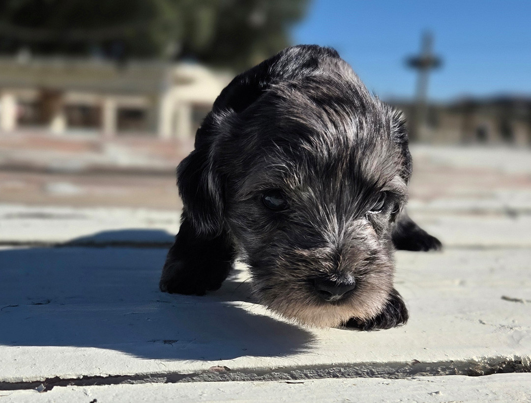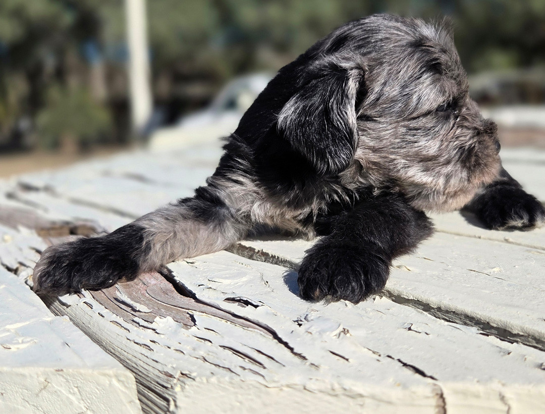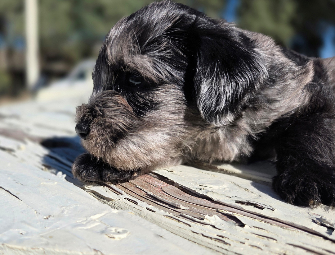A striking, well-bred male Miniature Schnauzer in a rare blue merle coat seeks a loving forever home. He combines classic Schnauzer intelligence and loyalty with a calm, affectionate temperament that makes him an excellent companion for individuals, couples, or families who can provide consistent care and gentle leadership.